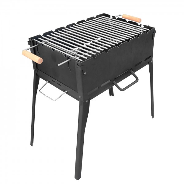 Мангал PROMETEO Q 6 VBR изготовлен из горячекатаной стали высокого качества толщиной 2 мм, которая делает его чрезвычайно устойчивым к прогоранию и деформации. Кроме того, сталь обработанная при помощи технологии «воронение», которая позволяет не только придать стали эстетический вид, но и уберечь ее от коррозии. Все детали мангала склепанные между собой, а сам мангал складывается в форму удобного кейса, что не позволит Вам потерять важную деталь и занимает мало места. Мангал оборудован центральной ручкой, а также двумя дополнительными боковыми ручками, которые не нагреваются.