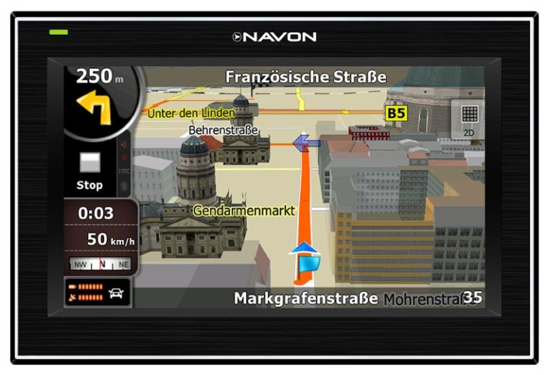 Наслаждайтесь полноэкранным видом навигационной карты. Новые Navon N550 оснащен 4.3 дюймовым экраном. Новый размер экрана делает навигацию проще и нагляднее, чем когда-либо. Вы быстро научитесь полагаться на свой Navon N550 во всем, начиная с местонахождения и планирования маршрута и заканчивая поиском основных точек сервиса, а также мест отдыха и развлечений в незнакомой Вам местности.