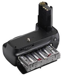 Батарейный блок для цифровых зеркалиных фотокамер Nikon D80. В нем используются или шесть АА батареек, или 2 аккумулятора EN-EL3e.