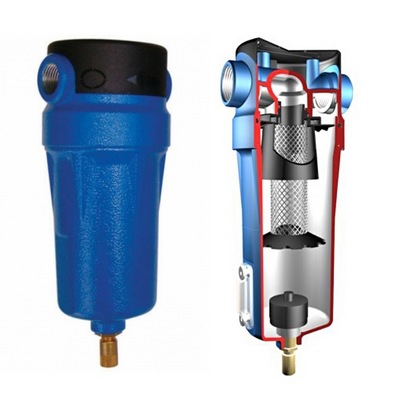 При попадании в сепаратор, сжатый воздух начинает завихряться при помощи специальной диафрагмы. Таким образом, конденсат, содержащийся в воздухе, отводится к стенкам сепаратора под действием центробежной силы. По стенкам он постепенно стекает на дно и удаляется оттуда при помощи клапана, отводящего конденсат.