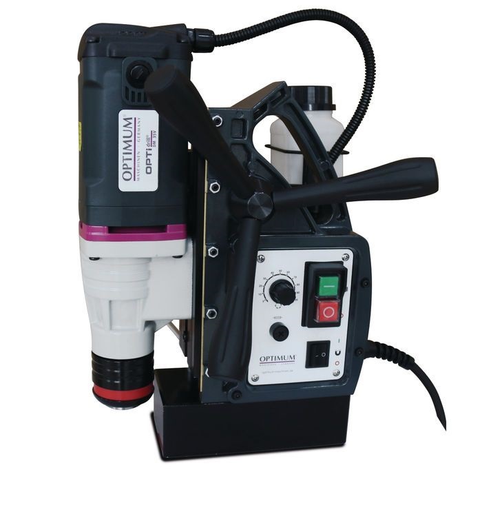Подача охлаждающей жидкости происходит непосредственно на наконечник сверла существенно снижает износ режущей кромки инструмента. Резервуар для охлаждающей жидкости в модели магнитного сверлильного станка OPTIdrill DM 35V выполнен съемным.