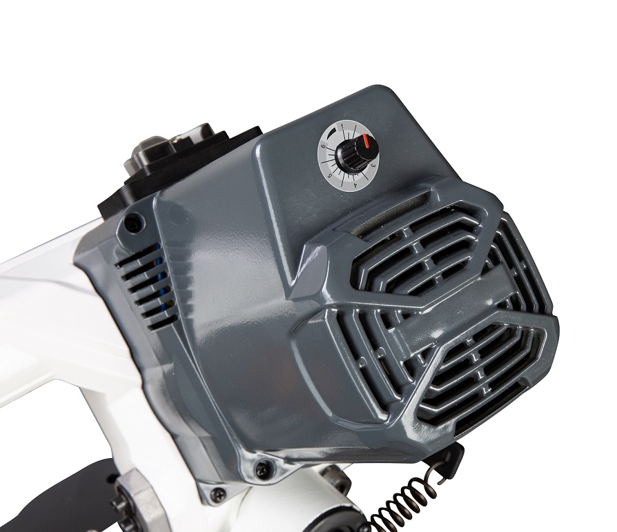 Скорость движения пильного полотна регулируется вариатором оборотов и располагается в диапазоне 30 — 80 м/сек.