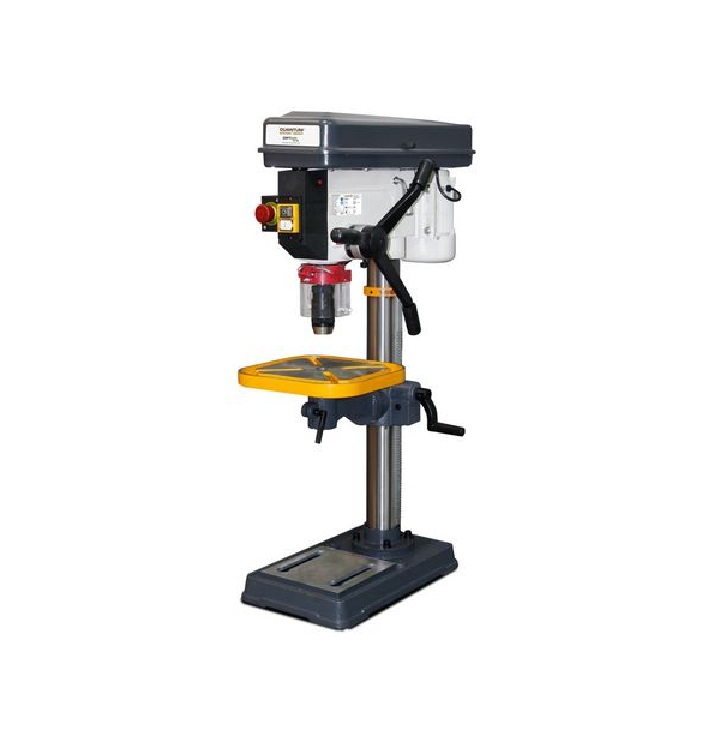 Масивна опорна плита настільного свердлильного верстата OPTIdrill DQ 20 посилена ребрами жорсткості, має шліфовану робочу поверхню з Т-подібними пазами для фіксації допоміжного інструменту і може слугувати робочим столом під час роботи з деталями більшої довжини.