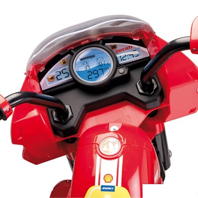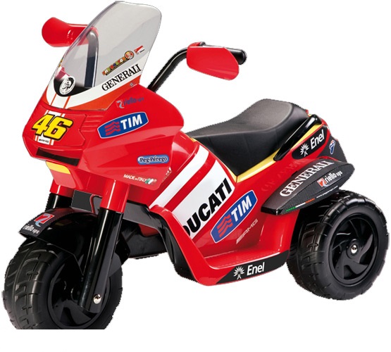 Известный итальянский гонщик Валетино Росси вдохновил инженеров Peg-Perego (Италия) на создание детского трёхколёсного мотоцикла с электроприводом Desmosedici Raider.