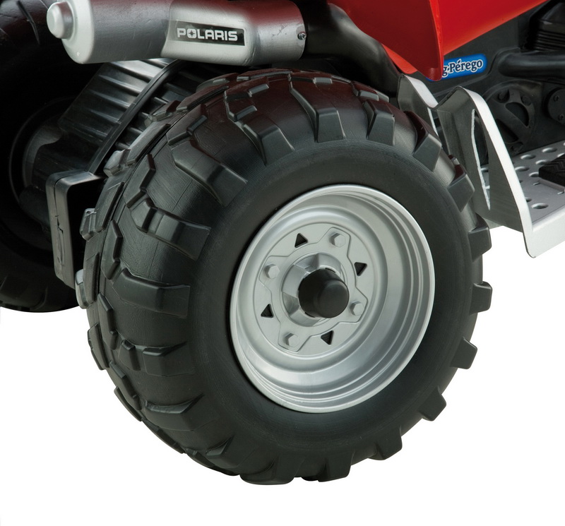 Квадроцикл оснащен двумя мощными двигателями по 165 Вт каждый и двумя ведущими колесами, что делает его «настоящим» в глазах не только детей, но и пап.