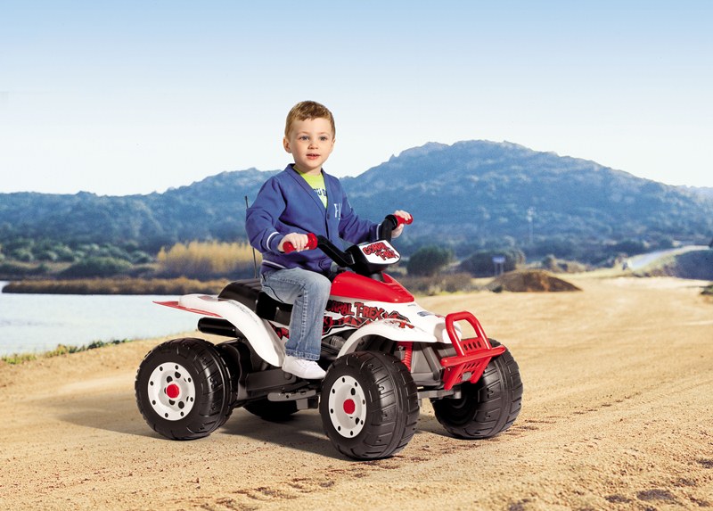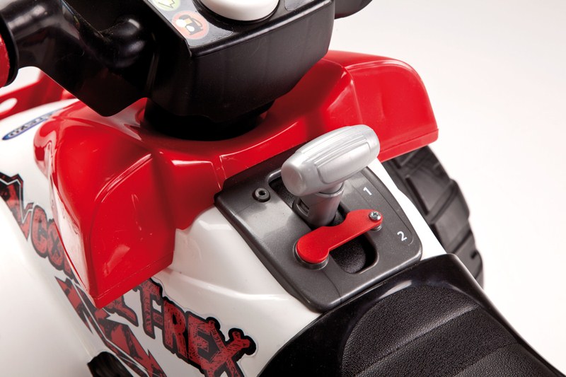 Детский квадроцикл Corral T-Rex – малыш с большими возможностями. Этот компактный квадроцикл способен на то, что от него никто не ожидает: преодоление подъемов до 10%, скрость до 7 км/ч запас хода -до 6 км. Все это возможно благодаря оптимальному соотношению веса и мощности двух моторов по 140 В.