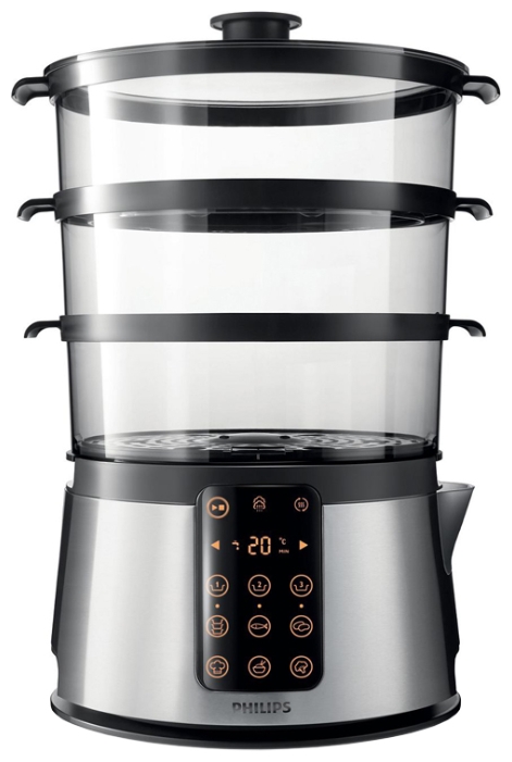 Пароварка: 2000 Вт, система Flavour Booster для жидкостей и сухих трав , индикация уровня воды, 3 чаши (2,6-3,8-3,2 Л), отдельный поддоны для каждого уровня, цифровой таймер, функция поддержания температуры,система комплексный обед, система "шеф-повар", материалы основания - метал