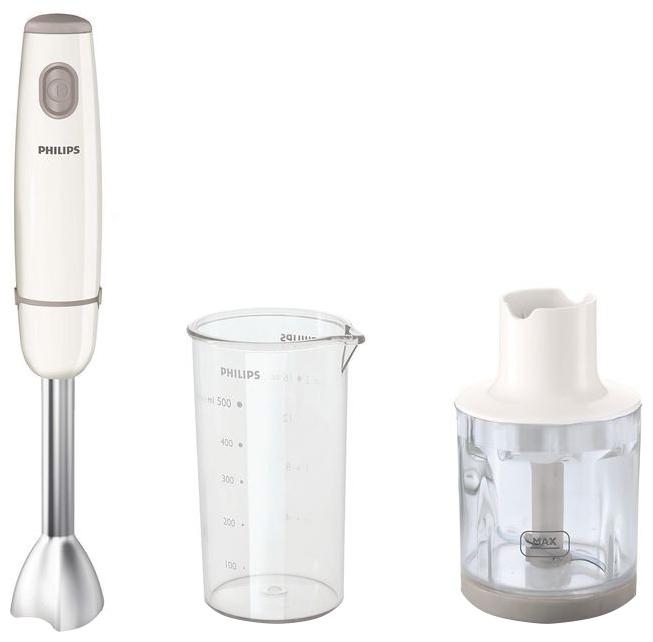 Ручн.блендер: 550 Вт, 1 скорость, материал насадки: метал, измельчитель (комп.), мерный стакан (0,5 Л).
