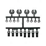 В комплект входит: 4 кротких наконечника под шаровой шарнир, 4 длинных наконечника под шаровой шарнир, 8 фланцевых втулок 6х8х6мм, 4 опорные чашки для пружин.