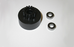 Металлический колокол сцепления с шестерней 14 зубьев, в сборе с подшипниками для радиоуправляемых автомоделей Bagira, Vector, Cyclone. Внутренний диаметр под кулачки сцепления 26мм.