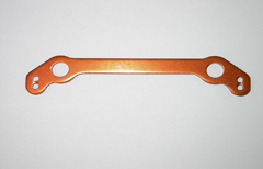 Пластина ограничителя нагрузки на сервопривод из алюминиевого сплава толщиной 4мм, анодирована в оранжевый цвет, для радиоуправляемой автомодели Cyclone 28. Диаметр отверстий под оси рулевой трапеции 8мм, расстояние между ними 70мм, диаметр крепежных отверстий для шаровых шарниров рулевых тяг 3мм.