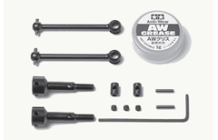 В комплект входит: 2 полуоси, 2 колесных привода, 2 оси карданного шарнира, 2 сердечника карданного шарнира, 3 контрящих винта М3х3, шестигранный ключ, смазка.
