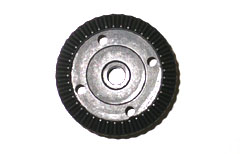Чёрная металлическая шестерня, 41 зуб, диаметром 41мм и высотой – 17мм с четырьмя отверстиями диаметром 3мм для крепления и одним отверстием 6мм в центре - под ось.