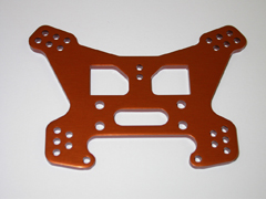 Пластина крепления задних амортизаторов из алюминиевого сплава толщиной 4мм анодирована в оранжевый цвет для радиоуправляемой автомодели Cyclone 28. Диаметр крепежных отверстий 4мм, расстояние между ними 36мм.