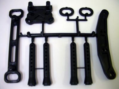 В комплект входит: 8 стоек, переднее и заднее крепления стоек, 4 пластиковые шайбы для установки корпуса.