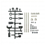 В комплект входит: 2 пластиковых регулировочных гайки, 2 переходных пластиковых втулки 2х3х5 с упорным фланцем, 2 пластиковых наконечника под шаровой шарнир, 2 переходных пластиковых втулки 5х8х2.5 с упорным фланцем, 2 крепления тяг привода тормозов к качалке сервомашинки, 2 крепления тяг привода дроссельной заслонки к качалке сервомашинки, 1 накладка на качалку сервомашинки с отверстиями крепления, 1 шаровой наконечник тяги привода дроссельной заслонки, 3 металлических тяги 2х68мм, 4 металлических ограничителя хода, 1 возвратная пружина дроссельной заслонки, 6 контрящих винтов М3х3 с внутренним шестигранником, 2 регулировочные гайки, 3 пластиковых шайбы М3, 2 винта М2х8, 2 гайки М2, 1 винт М2.5х18, 1 винт М3х10, 1 гайка М2.5 с нейлоновой вставкой.