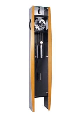 двухгиревой троссовый, с 7-ми дневным запасом хода, скелетон. Механизм оборудован двумя колокольчиками и имеют получасовой бой "Бим-Бам". Механизм оборудован вынесенной секундной стрелкой.