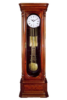 Вестминстерская мелодия, четвертной бой, 8-ми струнный механизм боя. Механизм оборудован вынесенной секундной стрелкой, функциями ручного и автоматического отключения боя на ночное время суток. Римская оцифровка, обьёмные декоративные накладки.