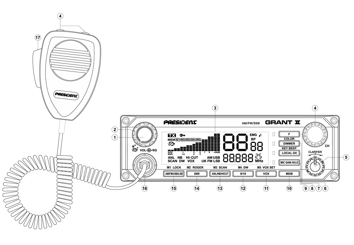 - Гарантия на радиостанции President 2 года на запчасти и 3 года сервисное обслуживание.