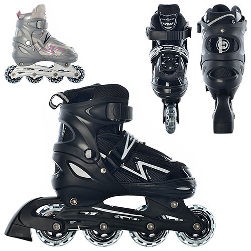 Данная модель роликов имеет крепкую фиксацию по ноге за счет шнуровки и бакли, что придает Вам комфорта и уверенности при езде. Рама в данной модели алюминиевая, облегченная. Раздвижные полумягкие ролики подарят чувство комфорта и уверенности во время движения. Особенностью роликов является раздвижная конструкция на 4 размера, которая разработана для того, чтобы не было необходимости покупать новые ролики каждый сезон. Ролики имеют высокий ботинок с безопасными легко застегивающимися клипсами, который защищает ногу от травм.