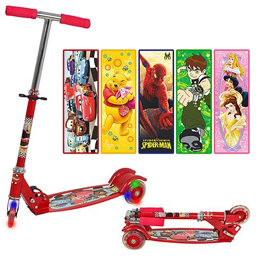 Складной самокат с возможностью регулировки высоты руля до 73 см (в зависимости от роста ребенка).