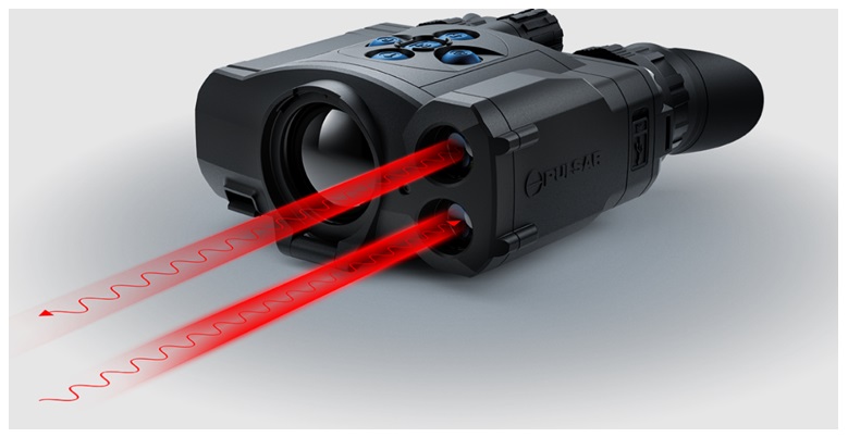 Наявність далекоміра значно розширює функціональні можливості приладу. Існує багато ситуацій, де знання точної дистанції до об'єкта грає ключову роль. Прилад має вбудований далекомір з класом лазерної апаратури 1, згідно BS/EN 60825-1: 2014. Працює в невидимому для зору людини і тварин діапазоні з довжиною хвилі 905 нм. Далекобійність моделі становить близько 1 кілометра, похибка вимірювань±1м. Показання відображаються на головному екрані. Далекомір може працювати в двох режимах: безперервне сканування і одиночне вимір.