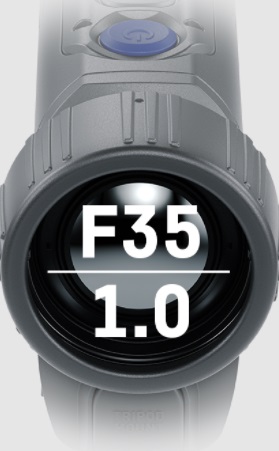 Ширококутна германієва оптика з об'єктивом F35/f1.0 надає збільшення від 2,5 до 20х. Кратність можна змінювати плавно і дискретно з кроком х2 або х4. Кут поля зору на мінімальному збільшенні дорівнює 12.5 x 9.4°, що буде відповідати області простору 21,9х16,4 м на відстані в 100 метрів. Фокусування ручне, кільцем на об'єктиві. Германієві лінзи (32Ge) з ідеальною геометрією оброблені з нульовим допуском, надають якісну картинку, оптичні спотворення повністю відсутні.