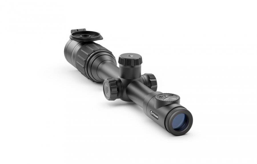 Digex прост и понятен в управлении. Ряд функций, а именно включение прицела, видеозапись, изменения увеличения и режим "Кадр-в-кадре" имеют собственные кнопки на корпусе. А работа остального функционала регулируется энкодером – который работает как кнопка и колесо-регулятор.