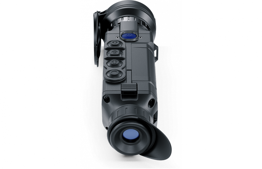 В окулярном блоке установлен полноцветный HD AMOLED дисплей разрешением 1024х768 пикс. Пользователям доступно предельно четкое и насыщенное изображение цели с большой глубиной цвета. По цветовым оттенкам палитр легко ориентироваться по наиболее «горячим» местам на поверхности цели. Технологии AMOLED имеют низкий уровень энергопотребления и адаптированы к работе в условии низких температур, вплоть до - 25°C. Дисплей имеет возможность изменения уровня яркости свечения, а также опцию отключения питания. Вынос выходного зрачка 15 мм. Возможность диоптрийной корректировки окуляра в пределах ± 5 дптр, позволит адаптировать изображение для людей с дефектами зрения. На окулярном блоке установлен мягкий резиновый наглазник скошенной формы, предназначенный для защиты от боковой засветки.