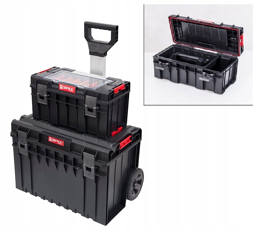 Ящики для инструментов QBRICK SYSTEM CART и PRO 500 (Z251095PG002) – это система хранения для слесарных принадлежностей. Состоит из двух инструментальных ящиков разной вместительности. Дополнена конструкция мобильной тележкой на колёсах, которая упрощает транспортировку ящиков по помещению или на улице. Ориентирована система хранения на автосервис и производство. Низкая цена ящиков QBRICK SYSTEM, разрешает использовать ящики в строительстве и быту. Изготовлены ящики из прочного пластика, дополненного рёбрами жёсткости. Конструкции устойчивы к ударам и падениям, могут использоваться в роли стула для слесаря, при проведении работ на высоте.