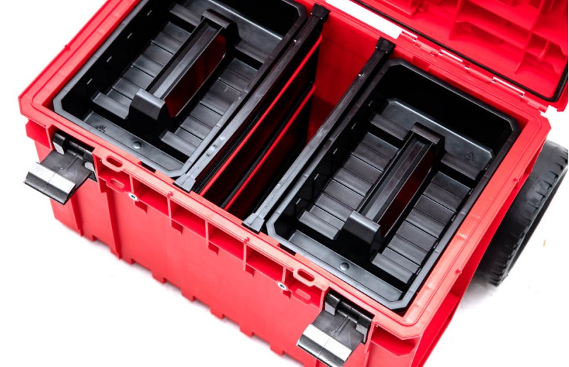 QS ONE Cart RED Ultra HD — это вместительный мобильный ящик для инструментов, оснащенный большими колесами, установленными на металлической оси. Оснащен телескопической ручкой из анодированного алюминия. Для лучшей организации внутреннего пространства комод оборудован двумя лотками и двумя отделениями.