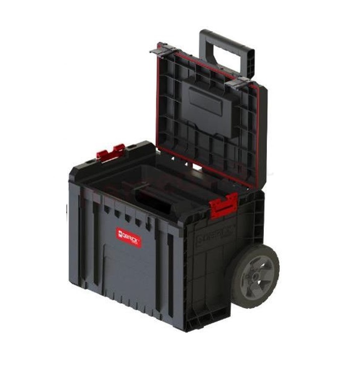 Qbrick System TWO Cart - модульний ящик на колесах, що є мобільною базою для створення персоналізованих наборів. Міцна телескопічна ручка, металева вісь, великі колеса з гумовим покриттям гарантують довговічність та відмінну маневреність. Ящик оснащений двома регульованими відділеннями – одним класичним та іншим Мульті, що завдяки різним власникам для ручного інструменту дозволяє легко підтримувати порядок усередині ящика. Крім того, знімний відсік Multi можна використовувати як автономний утримувач інструментів.