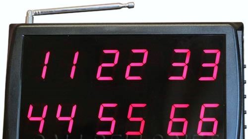 Одновременный вывод на экран 6 двухзначных вызовов официанта. Работает с кнопками вызова официанта и персонала HCM250, HCM130, HCM330.