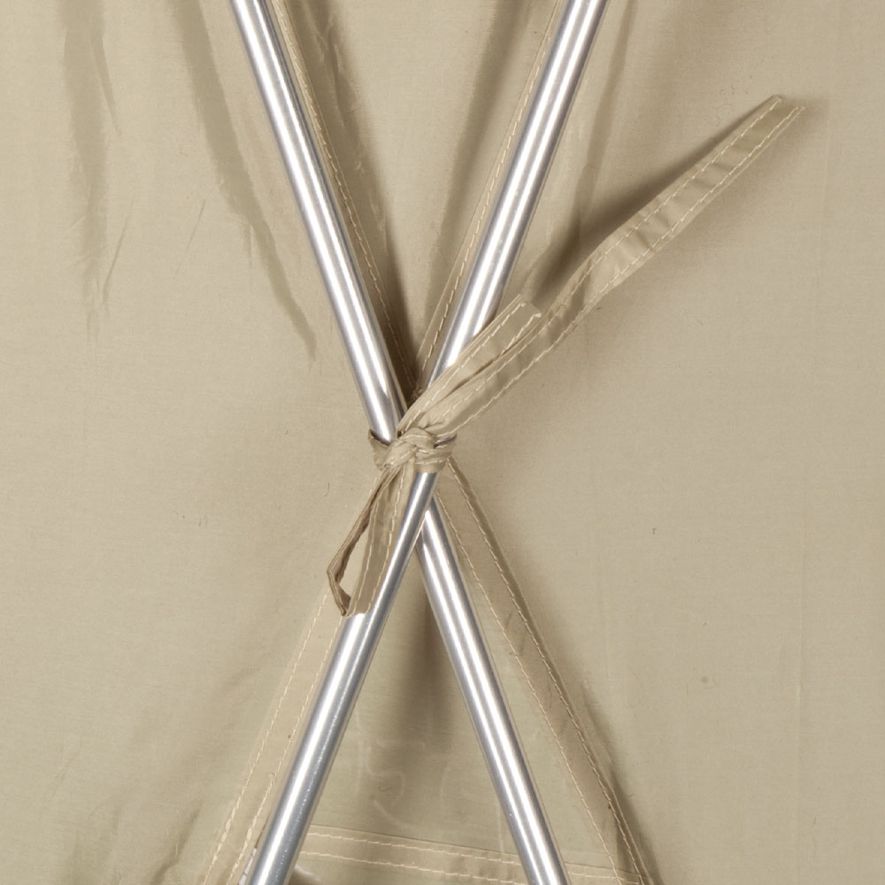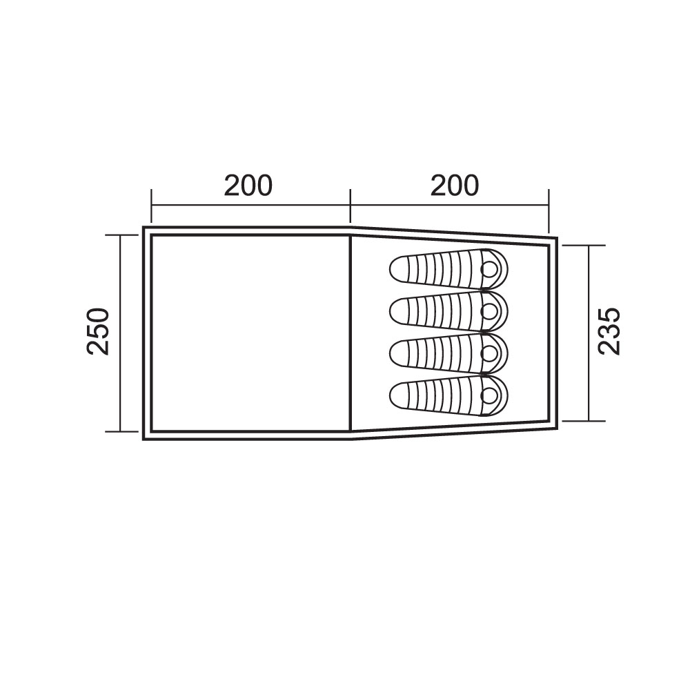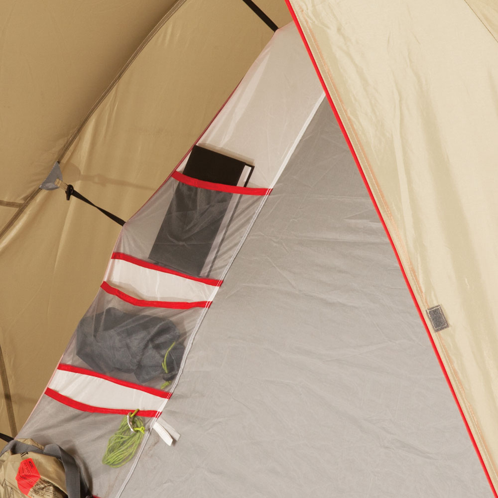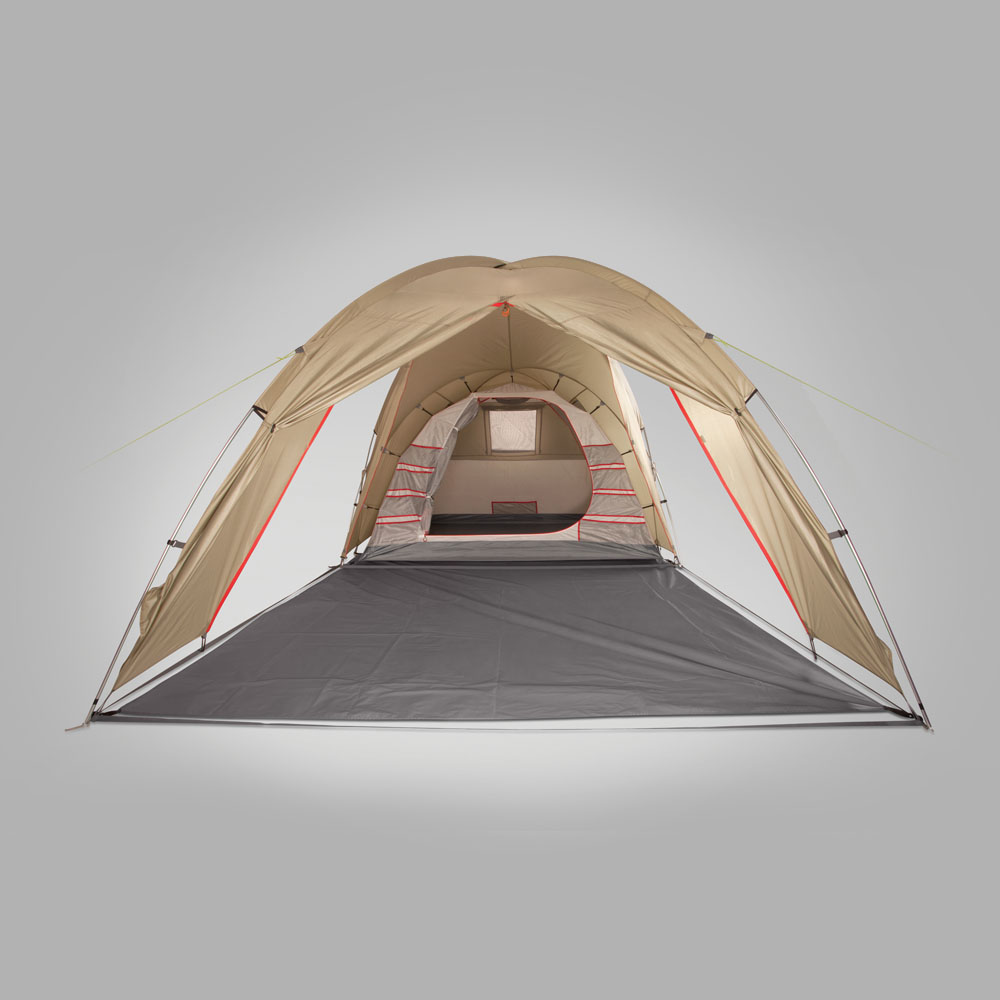 Дополнительную жесткость конструкции придает дюралюминиевый каркас ( 11 мм). Из качественного нейлона выполнен нижний слой изделия, а верхний слой и пол изготовлены из полиэстера 185T. Для того чтобы вещи и снаряжение оставались сухими и чистыми используется съемное дно foot print. Все углы усилены дополнительной тканью, а швы дна и тента проклеены лентой, что увеличивает водонепроницаемость палатки. Так что шатер легко сможет защитить вас от капризов природы.