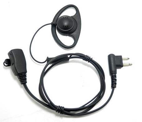 двухпроводная гарнитура, крепление на ухо, вынесенный микрофон совмещенный с кнопкой РТТ на петлицу (лацкан).
