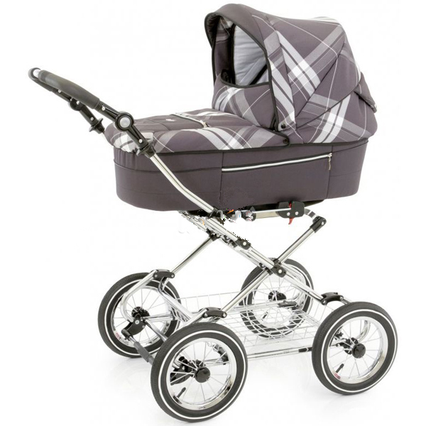 представлена как элегантная, современная коляска 2 в 1 с широким