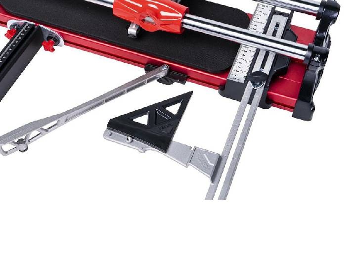 Профессиональный ручной плиткорез с параллельными направляющими, подвижным разделителем и фиксированной линейкой. Предназначен для частой резки керамогранита и интенсивной резки гресса и керамической плитки. Выполнен крепкий боковой упор. Имеет миллиметровую шкалу для серийной резки, например плинтусов. Имеет приспособление для упрощения реза по диагонали. Имеет удобную рукоятку soft-grip. Втулки ездят по направляющим на шарикоподшиниках. Это обеспечивает плавную резку и минимум обслуживания. Направляющие цельностолевые acero macizo диаметром ø25 мм, калиброванные, хромированные, с антикоррозионной обработкой. Рабочий стол из экструдированного алюминия. Профиль закрыт для большей прочности. Плиткорез оборудован высокоэффективным подвижным разделителем с системой магнитной блокировки кавычки. Пластиковые накладки для защиты керамики от повреждений. В комплекте 4 ножки для равновесия широкой плитки, которые передвигаются по всей длине. Имеет 6 регулируемых качественных ножек на основе. Кроме того, ручной плиткорез RUBI HIT-1200 PLUS имеет еще ряд отличий по сравнению с RUBI HIT-1200. У него большее расстояние между направляющими (112 мм) для улучшения стабильности во время резки. Имеет два алюминиевых опоры для удобства работ с плиткой большого формата. Используются роликовые резцы Plus от Ø6 до 22 мм. В комплекте Ø22 мм Extreme.