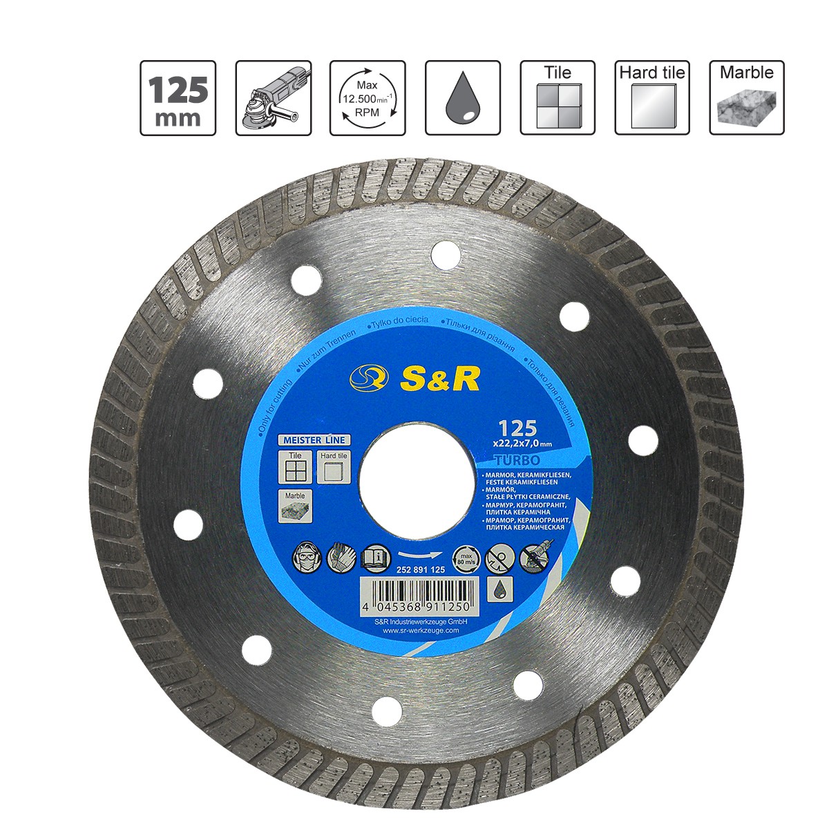 S&R Meister по керамограниту 125 мм. - отрезной алмазный диск серии TURBO, предназначен для работы с таким материалом: