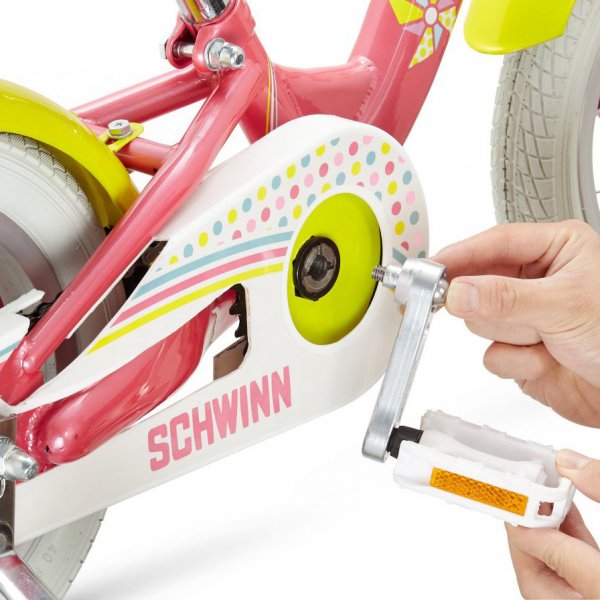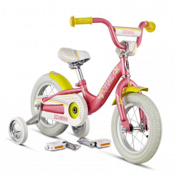 Schwinn Pixie - рассчитан на детей возрастом до 4-х лет. Он хорош на первых этапах обучения катанию на байке. Благодаря его геометрии и системе съёмных шатунов, его с лёгкостью можно использовать как беговел, что полезно для развития координации движения ребёнка и удержания баланса.