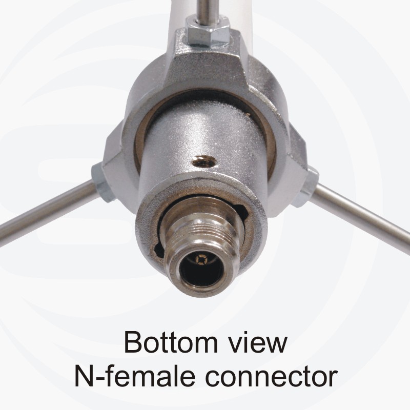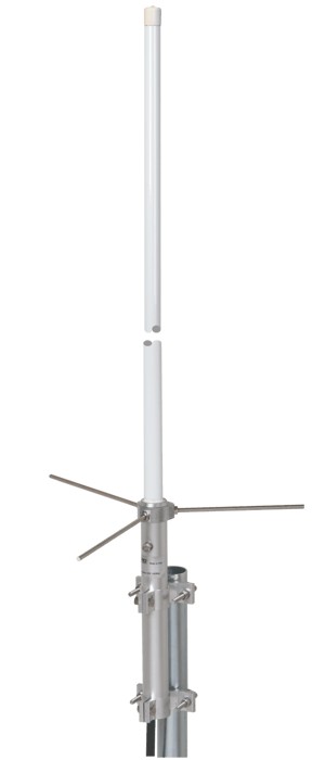 Колинеарная двухдиапазонная антенна. Основной штырь, выполненный из меди, помещен в стекловолоконную трубку для обеспечения высокой защищенности от плохих климатических условий, радиальные штыри сделаны из нержавеющей стали для достижения максимальной прочности. Крепление из оксидированного алюминия обеспечивает легкость установки на мачте.