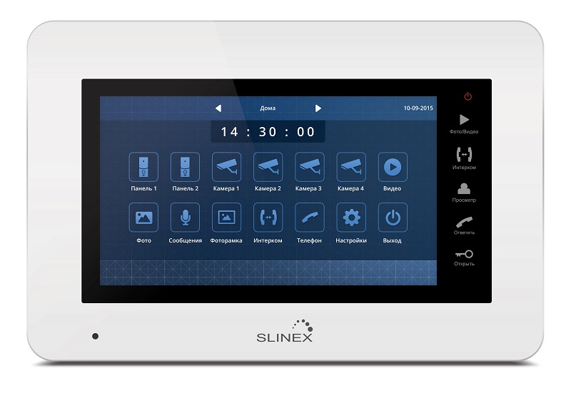 Многофункциональный домофон XS-07M – первый сенсорный в линейке Slinex. Сенсорный экран облегчает управление широким набором функций данного домофона. Кроме того, изображение с вызывных панелей и камер в разрешении 800 на 480 пикселей смотрится качественно на 7-дюймовом цветном экране.