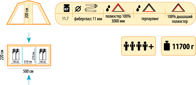 - Внутр. палатка: 100% дышащий нейлон