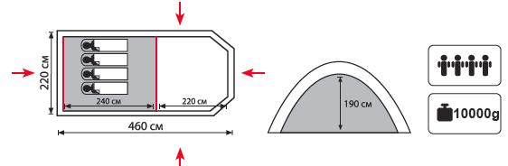 - Тент: 100% полиэстер 75D/190T WR PU, 3000 мм в ст