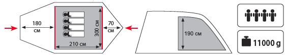 - Тент: 100% полиэстер 75D/190T WR PU, 3000 мм в ст