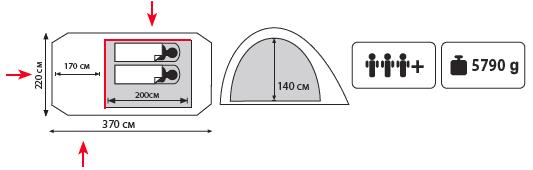 - Внутр. палатка: 100% дышащий полиэстер