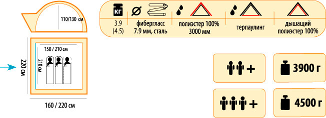 - Внутр. палатка: 100% дышащий нейлон