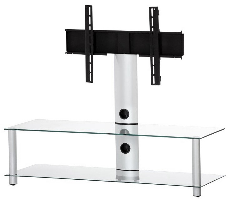Sonorous NEO 130-B-SLV — стильная стойка серии NEO от турецкого производителя для установки телевизора с диагональю до 65″. Изготовлена из анодированного алюминия в цвете серебро; полки – из прозрачного закаленного стекла с плоским полированным краем. Толщина верхнего стекла – 8 мм, нижнего – 6 мм. Стойка комплектуется стационарным кронштейном. Крепление поддерживает форматы 20x20, 30x30, 30x20, 40x20, 40x30, 40x40, 60x40, 20х60, 20х40