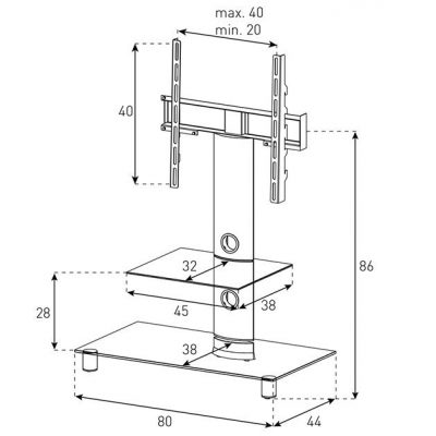 Sonorous NEO 81-B-HBLK — стильная стойка серии NEO от турецкого производителя для установки телевизора с диагональю до 32″. Изготовлена из анодированного алюминия в цвете черный глянец; полки – из черного закаленного стекла с плоским полированным краем. Толщина верхнего стекла – 8 мм, нижнего – 6 мм. Стойка комплектуется стационарным кронштейном.