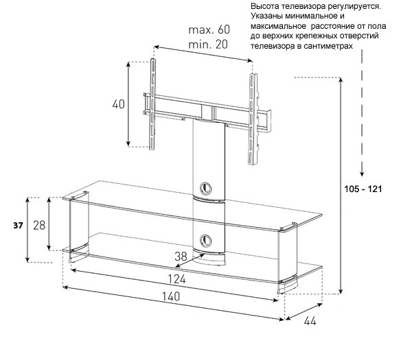 Диагональ ТВ (дюймы): 42-80