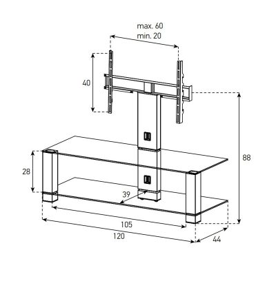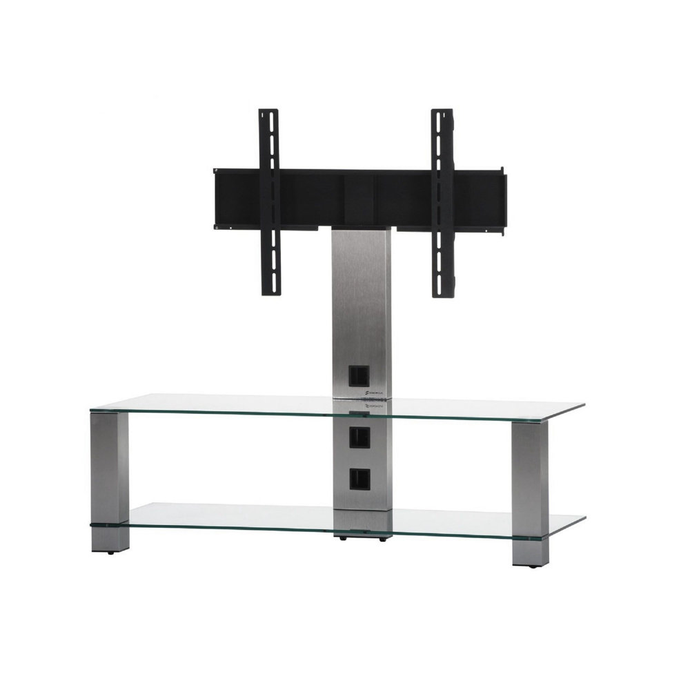 Надежная стойка под большие телевизоры с универсальным поворотным креплением из закаленного стекла с закругленными углами и полированной кромкой. . Поворотное крепление подходит для всех видов плоских телевизоров (LCD, LED и плазма) и имеет возможность регулировки высоты. В широкой задней ножке расположен кабель-канал для маскировки проводов и кабелей. Оснащена скрытой роликовой системой для плавного перемещения вместе с телевизором и другой аппаратурой. Стойка предназначена для телевизоров с диагональю от 42 до 65 дюймов (или весом до 50 кг). Крепление поддерживает форматы VESA 20×20, 30×30, 40×40 и 60х40. Возможно оснащение увеличенным креплением (80×45).